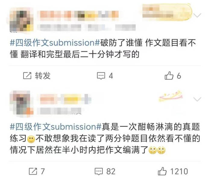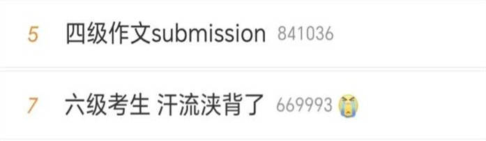 把“submission”送上热搜英语四级考生有多少?答案是110万