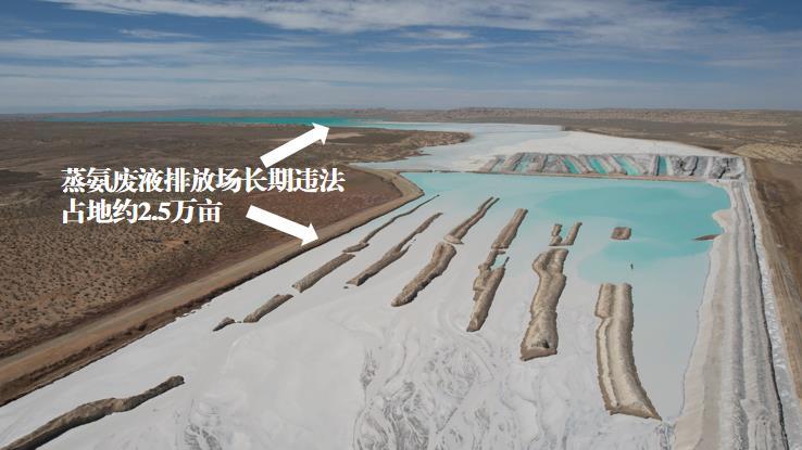 △图3 2023年9月,督察组暗查发现,青海发投碱业公司、中盐青海昆仑碱业公司蒸氨废液排放场长期违法占地约2.5万亩
