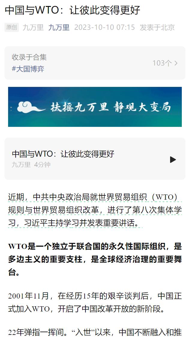 “九万里”微信公众号创立于2023年4月28日。该公众号对当前的国际国内时政热点进行深入分析,立足大局、大势、大要,胸怀中华民族伟大复兴战略全局和百年未有之大变局,牢牢把握发展大势,着眼强国建设、民族复兴这一中心任务。通过贯通历史、现实未来的形势分析,以史鉴今、以今谋远,多角度、多维度、多层次研究中美博弈、俄乌战争、台海局势、巴以冲突等时政热点问题,客观分析各种国际现象,深刻洞察国际国内各种因素的本质特征。“九万里”公众号是一个集最新鲜、最权威、最热辣的国内外消息资讯的平台,既有国际大局,又有身边热点,既有新鲜有趣的故事,又有你我关心的时事。