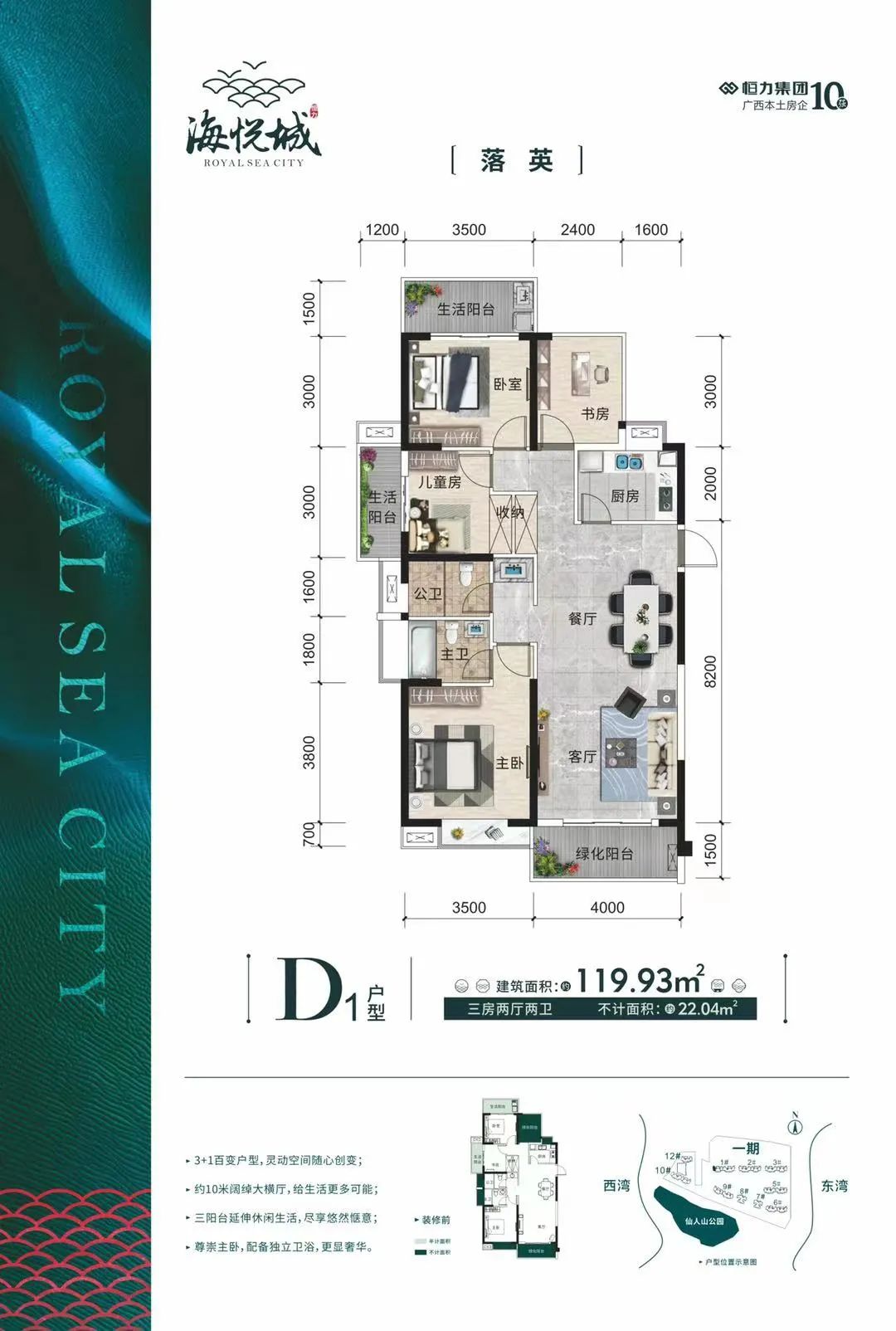 8.小区配套:自建36班幼儿园,打造约5万㎡东盟主题、东方茶艺商业街区,引入约1.2万㎡大型品牌超市,四大主题公园等满足业主日常所需。打造集生活、购物、休闲、娱乐、教育为一体的一站式滨海全时休闲场。