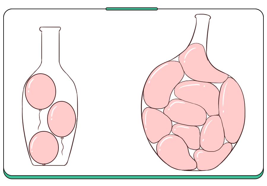 你想想同一个瓶子,1个里面有3个气球,1个有10个,吹的体积同样大,谁更容易胖?