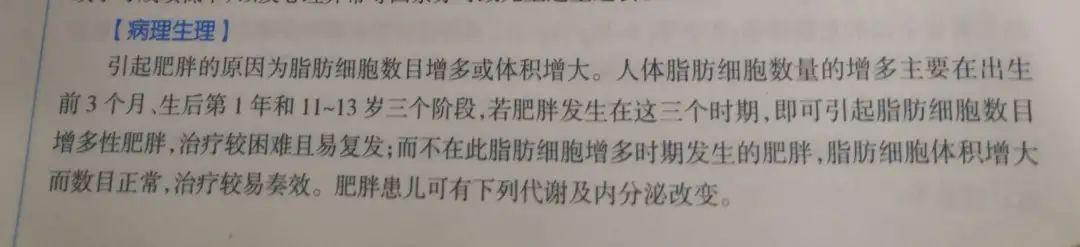 来源:儿科学(第8版)不少大人总会抱怨自己喝口凉水都会胖,别人瘦10斤跟玩似的,自己瘦1斤像玩命似的。很可能就是这个原因!(你的脂肪细胞数量基数大)