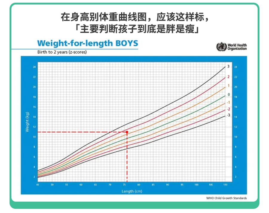 那么在身高、体重、胖瘦曲线中,分别是这么标(红点处):