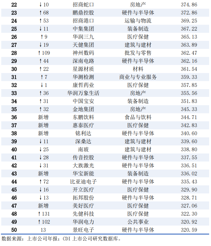 ——规模实力十强依次是:中国平安、招商银行、腾讯控股、万科、平安银行、比亚迪、工业富联、中信证券、招商蛇口、顺丰控股。