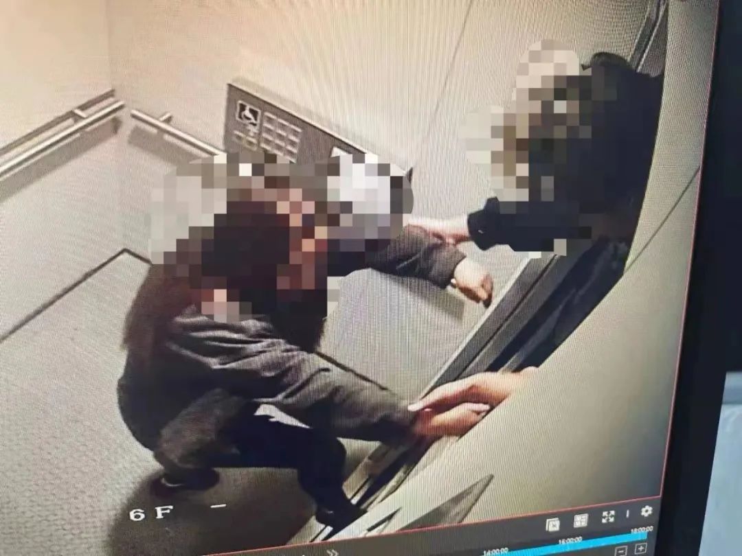 居民被困在电梯里后,邻居帮助脱险。