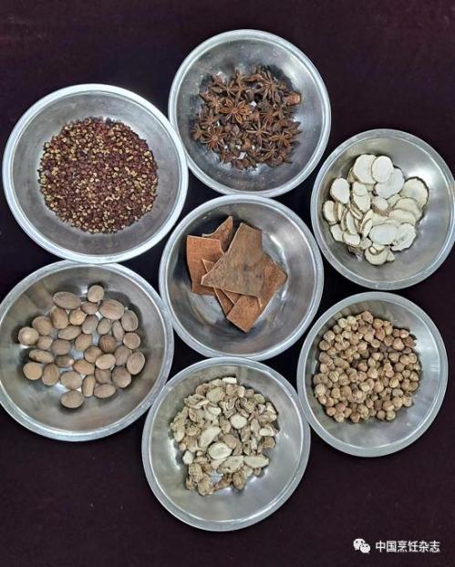 香料包中主要有肉桂、草果、小茴香、八角、山柰、花椒、良姜、当归等。经过十多个小时、不同火候的精心熬制,将全部食材的味道恰到好处地提炼出来。