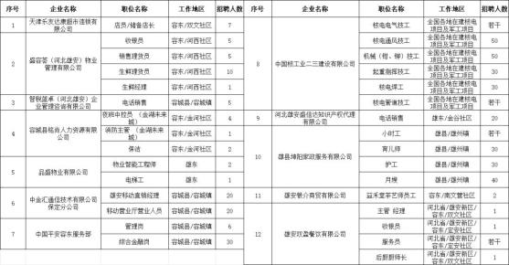 此次活动邀请中国核工业二三建设有限公司、盛容荟(河北雄安)物业管理有限公司等12家企业,提供31个岗位,414个用工需求。同时宣讲河北雄安新区高校毕业生就业创业政策宣传册内的内容。