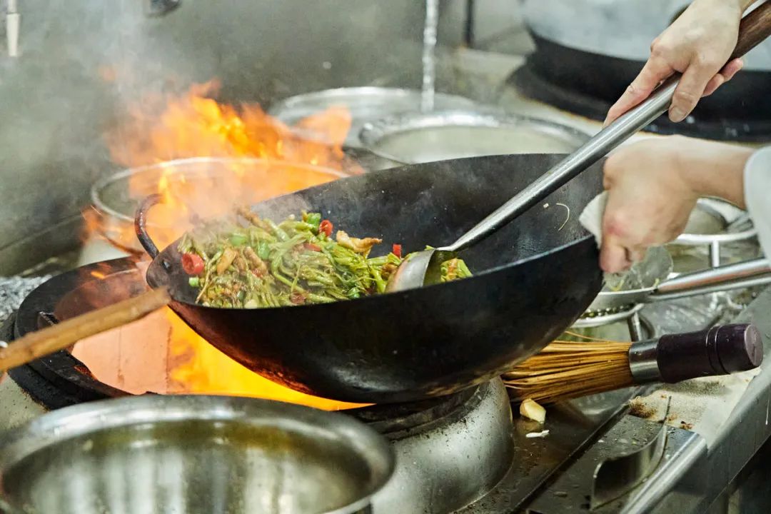 2.速度:减少无谓的翻动,避免食材流失过多的水分及香气。要想获得足够的镬气,需在食材处于香和焦的临界状态下再翻动。