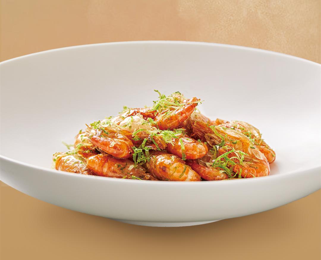 1.鲜虾清洗干净控水,热油200℃将鲜虾炸至外皮酥脆,虾肉断生。捞出控油,待油锅烧至220℃后再复炸一次,可以让虾的外壳更酥脆。