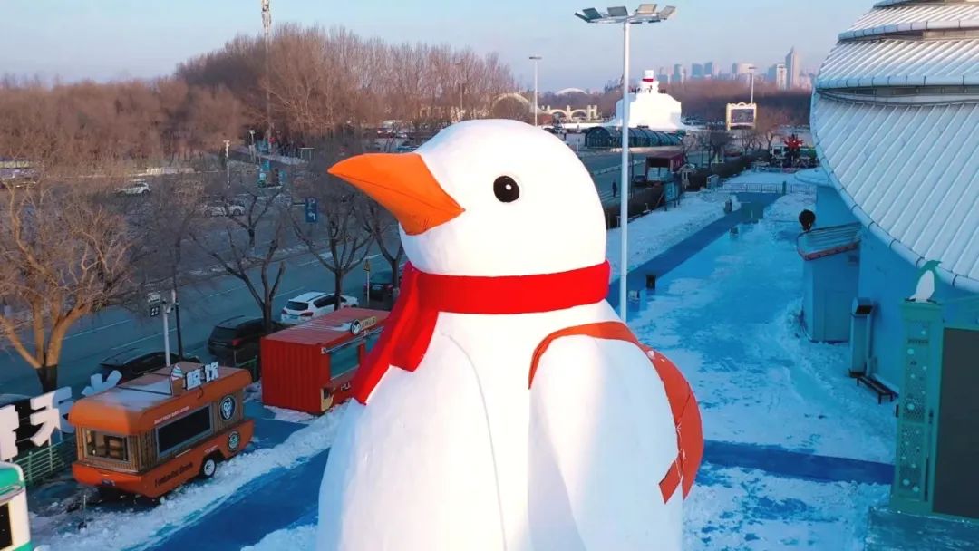 3.哈尔滨极地公园在哈尔滨极地公园同样有一个网红雪雕造型,它就是“逃学企鹅”。它身高11米,虽然没有哈尔滨音乐公园的大雪人个头大,但憨态可掬的企鹅造型,后背还背着个小书包,更显可爱。