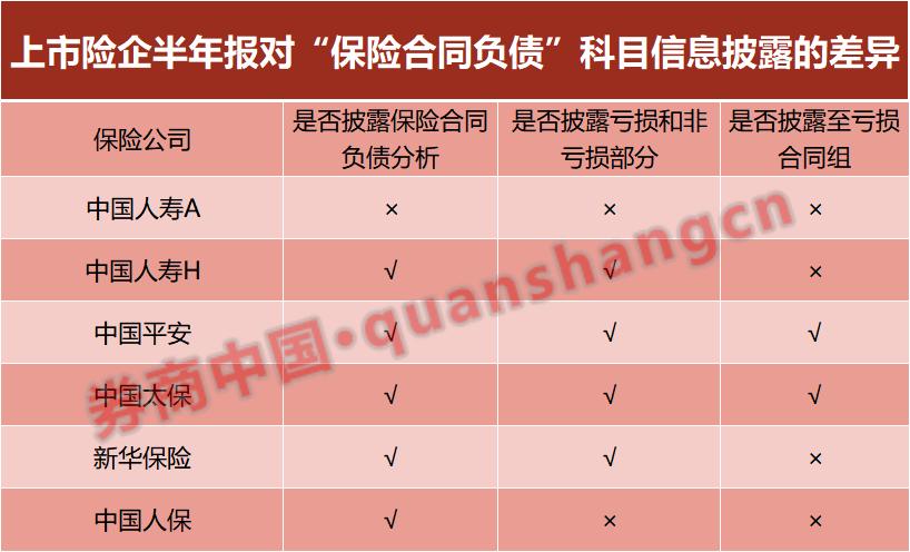 在AH两地报告信息的一致性上,中国人保和中国太保表现最好。信息差异最大的是中国人寿。中国人寿A股半年报仍是按照旧准则来披露,新准则报表仅在最后几页以补充资料的形式体现;H股半年报则按照新会计准则执行。据了解,中国人寿在2023年至2025年期间,将采用新保险合同会计准则过渡方案,在境内外披露不同格式的报告。新准则实施的重要意图是提高保险公司会计信息的真实性、准确性和可比性。但从目前的进展看,各家以简易披露为由出炉的半年报,信息还不够完整,颗粒度还不够,同业之间的可比性也有待提升。