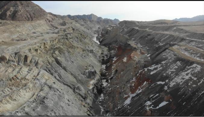 图4 2023年11月28日,督察组现场督察发现,甘肃泳泽矿业有限公司露天开采形成的矿坑未实施生态修复督察还发现,靖远县小石岘建筑用凝灰岩集中开采区4家企业均存在违法违规行为。其中,白银市靖远森荣矿业工贸有限公司于2021年7月取得采矿许可证以来,越界开采7.6亩,违法占地256.8亩,未按规定自上而下规范开采,造成大面积山体裸露。靖远中天建材有限公司违反矿产资源法,越界开采5.8亩,违法占地103.2亩,开采后造成的高陡边坡整治不彻底。靖远鸿源工贸有限责任公司、靖远小石岘石料场等2家企业也存在违法占地等问题。