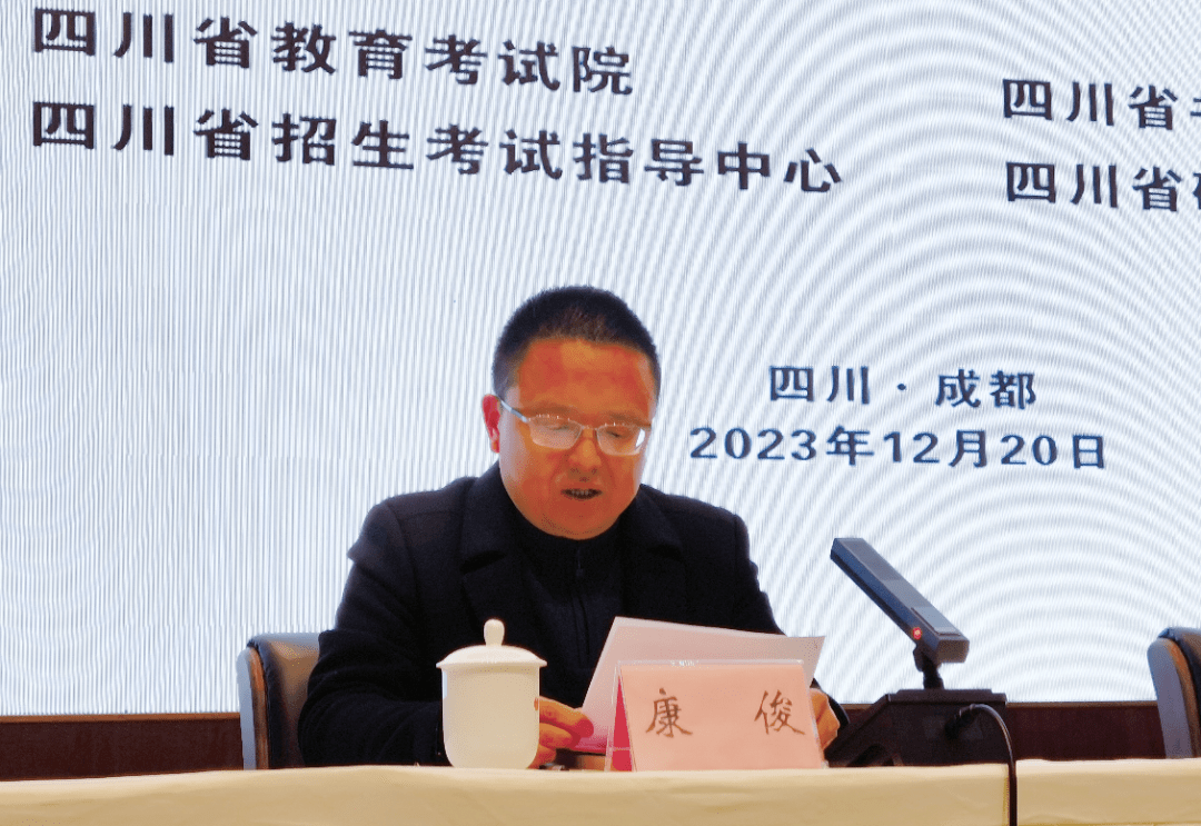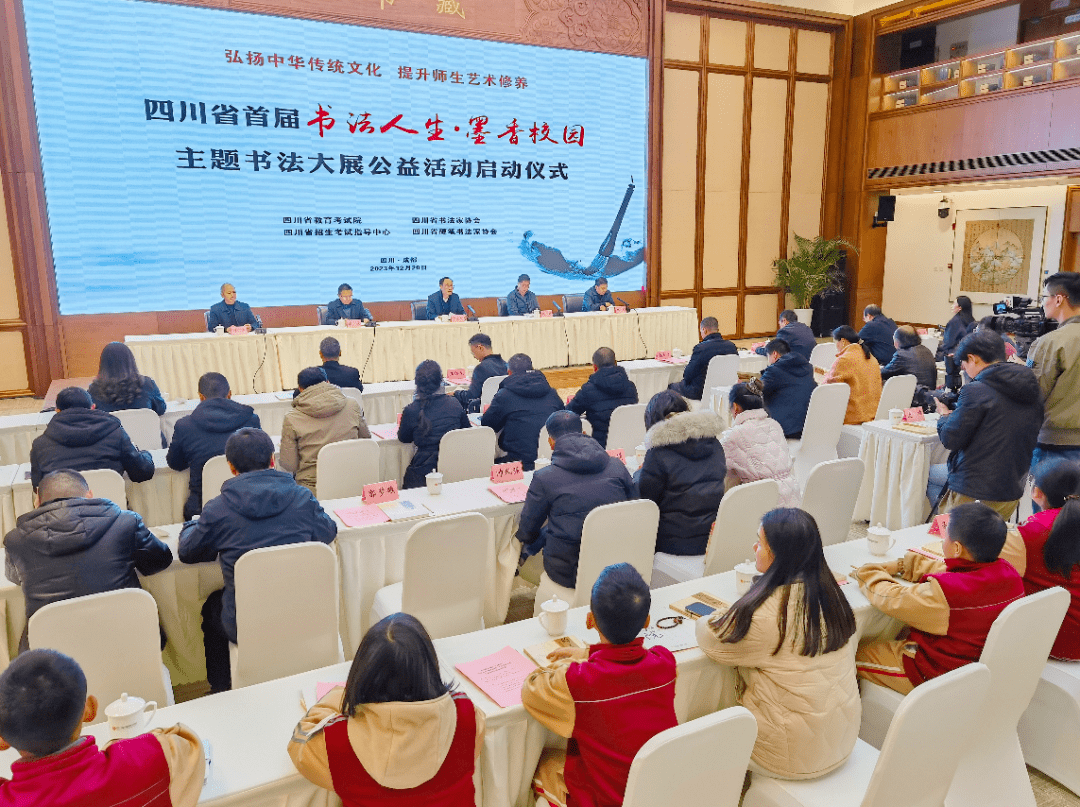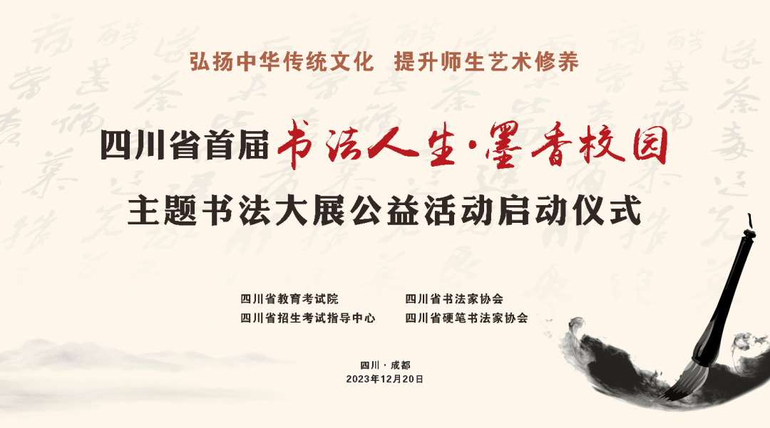 2023年12月20日,四川省教育考试院、四川省书法家协会、四川省硬笔书法家协会主办,四川省招生考试指导中心承办的全省首届中小学师生“书法人生·墨香校园”主题书法大展公益活动启动仪式,在位于温江的四川省教育考试与录取中心举行。中共四川省委教育工委委员、四川省教育考试院党委书记、院长丁念友,中国书法家协会副主席、四川省文联副主席、四川省书法家协会主席代跃,四川省硬笔书法家协会主席康俊出席启动仪式并讲话。