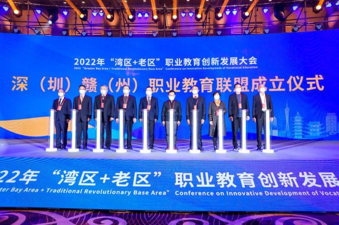 ▲召开2022年“湾区+老区”职业教育创新发展大会,成立深(圳)赣(州)职业教育联盟。据悉,近年来,我市紧抓赣州市“7510”行动计划与深圳市“20+8”战略性新兴产业集群有机衔接契机,积极推动职业教育“融湾”,召开了2022年“湾区+老区”职业教育创新发展大会、2023年“职业院校跨区域协同发展共同体”高质量发展研讨会,举行2023年大湾区产教联盟革命老区(兴国)协作基地暨大湾区产教联盟青少年红色研学(兴国)基地揭牌仪式,成立了深(圳)赣(州)职业教育联盟,成功引进深圳信息职业技术学院派出高水平管理团队入驻赣州职业技术学院,推动全市12所职业院校与深圳11所职业院校建立合作关系,成功引进华为技术有限公司共建华为电子信息现代产业学院及数字经济产教融合公共实训基地,全面推进校校合作、校企合作,实现“老区”与“特区”职业院校“双向奔赴”。