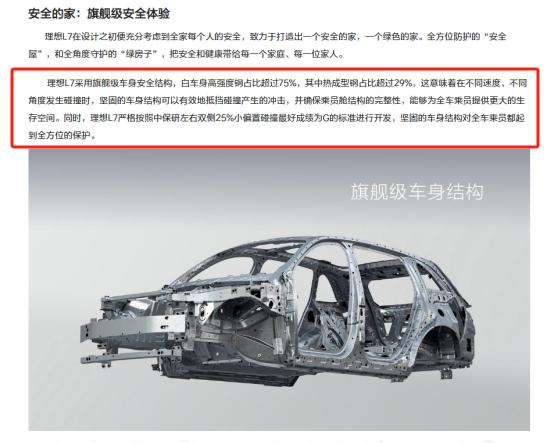 来源:理想汽车官网根据理想汽车官方此前介绍,理想L7采用旗舰级车身安全结构,白车身高强度钢占比超过75%,其中热成型钢占比超过29%;同时,理想L7严格按照中保研左右双侧25%小偏置碰撞最好成绩为G的标准进行开发。