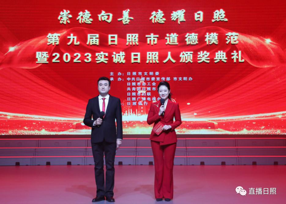 学习道德模范,弘扬社会正气。第九届日照市道德模范暨2023实诚日照人颁奖典礼由日照市文明委主办,中共日照市委宣传部(文明办)、日照市总工会、共青团日照市委、日照市妇联、日照广播电视台共同承办,日照银行协办。