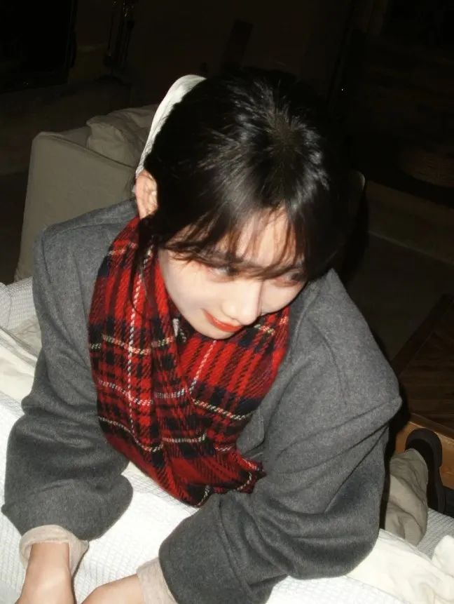 甜妹张元英的这条蓝白色格纹围巾,干净清新又衬肤色,想马上就get同款。