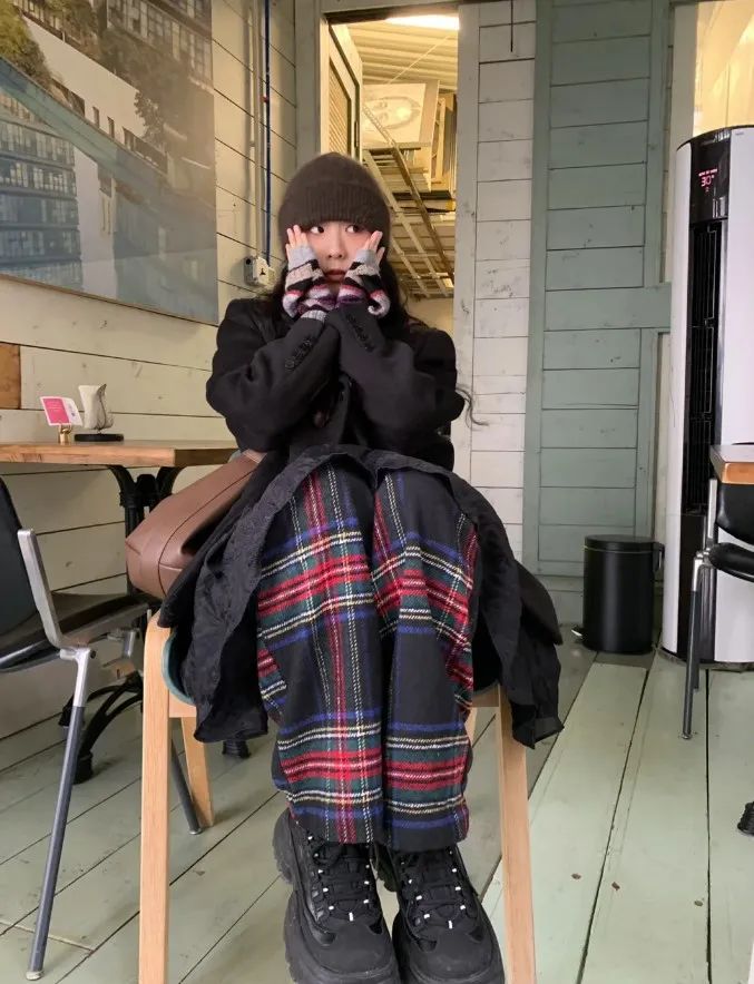 格纹半裙自带复古感,绝对的秋冬必备款!