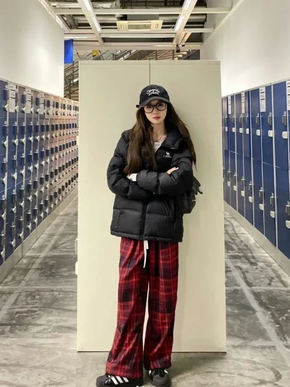 很多网红博主喜欢穿红色格纹裤,与同色系的外套进行搭配,统一感更胜。