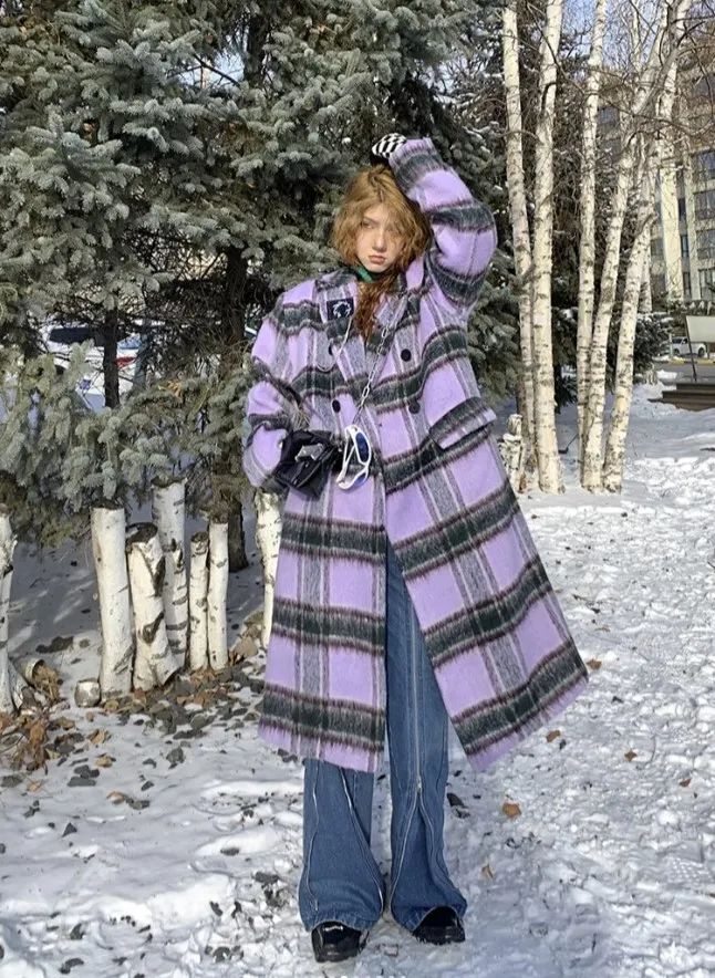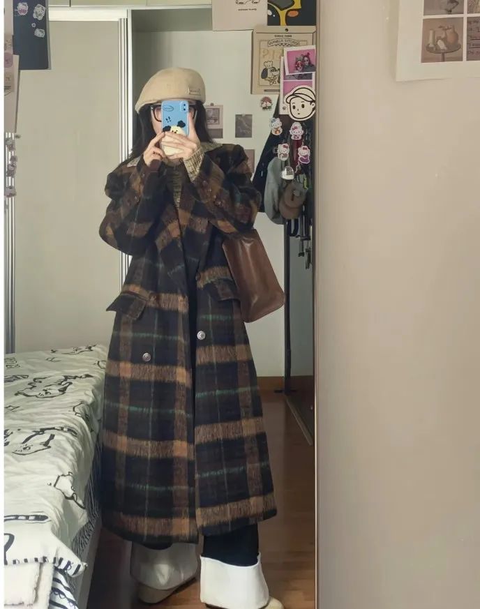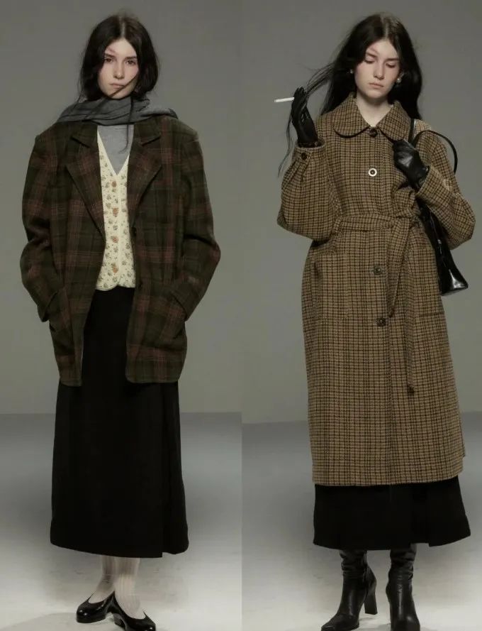 比起纯色的大衣,格子大衣多了许多复古和随意感,而且不同的格纹还能打造不同的风格。