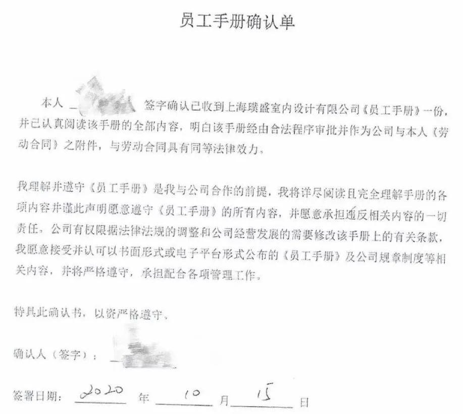 已经小高签字的员工手册确认单中载明“本人小高签字确认已收到B公司《员工手册》一份,我将详尽阅读且完全理解手册的各项内容,并愿意承担违反相关内容的一切责任。”