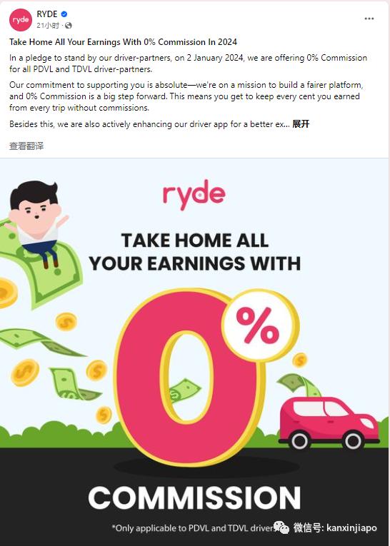 12月22日,新加坡本土私召车业者Ryde宣布,将于明年1月2日起取消司机佣金,是业内首家实行零佣金计划的公司。