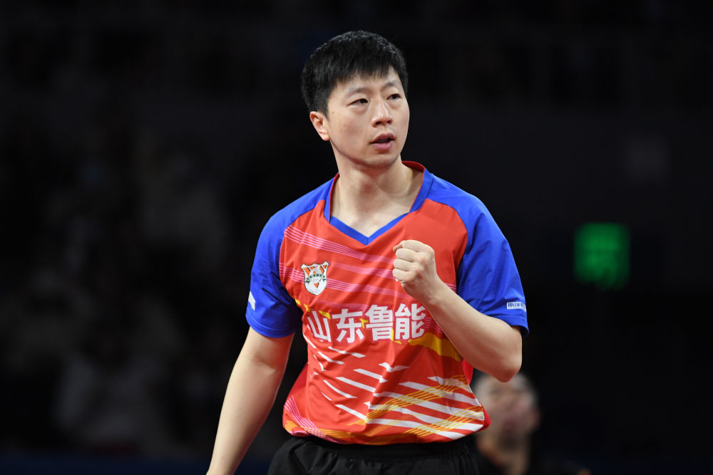 马龙在男单比赛中庆祝得分。新华社记者 梁旭 摄