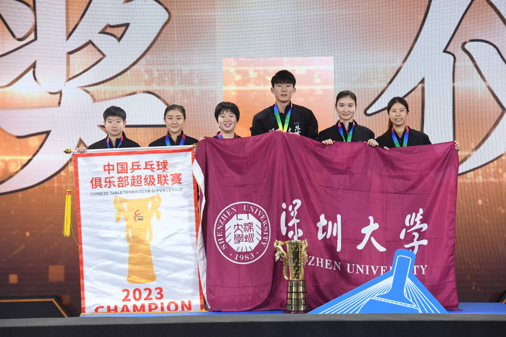 女团冠军的争夺更为胶着,拥有陈梦、孙颖莎两位奥运冠军的深圳大学队3比2艰难战胜王曼昱所在的山东鲁能女队夺冠。