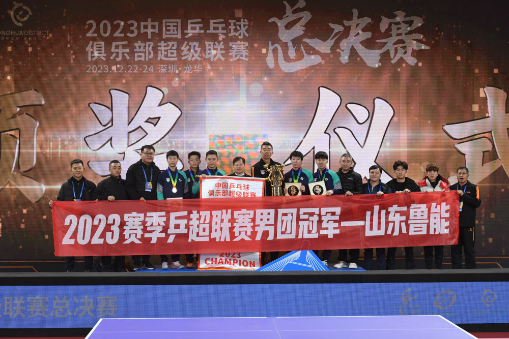 24日,在深圳举行的2023中国乒乓球俱乐部超级联赛总决赛男团决赛中,由马龙、袁励岑、徐瑛彬出战的山东鲁能队以3比1战胜由王楚钦、梁靖崑、周启豪出战的山东魏桥队,获得冠军。