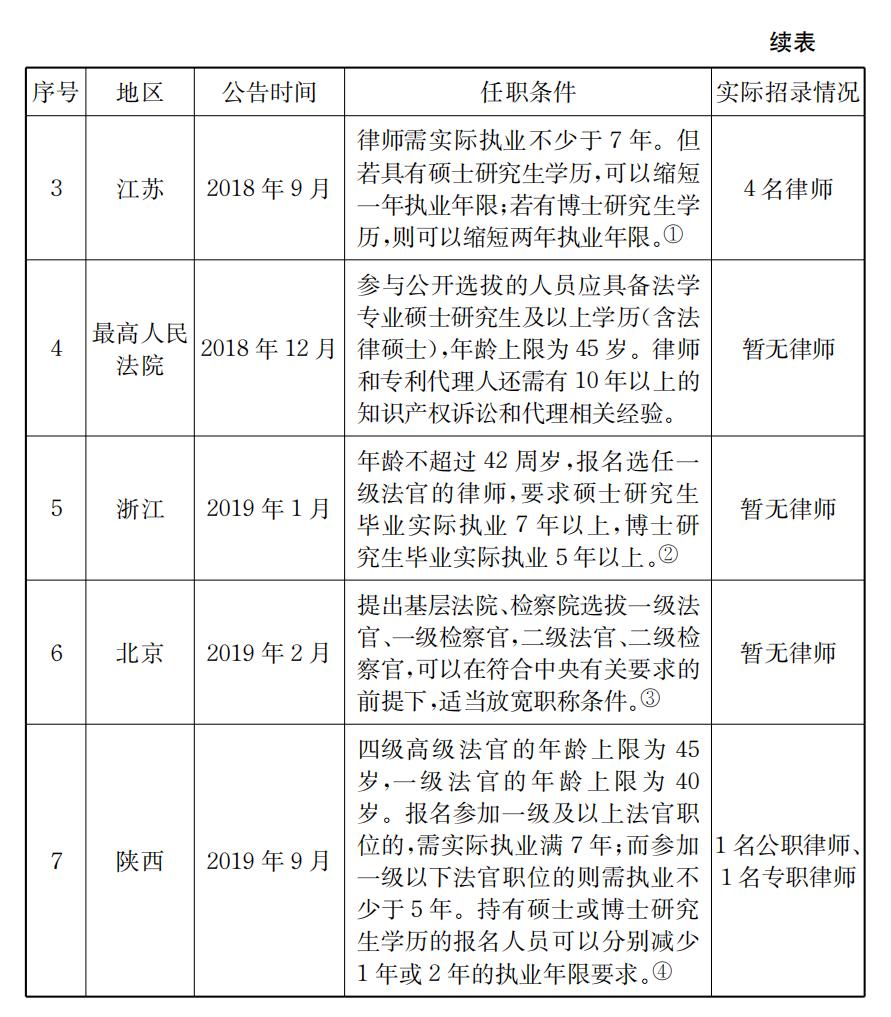 我国的最高人民法院以及包括上海、广东、陕西、浙江、北京、江苏、吉林、山东、河南在内的各省份,已经连续开展了10次从律师群体中选拔法官的活动。从地域来看,律师转任法官制度尚未有效地在全国推行,虽然中共中央办公厅在2016年明确提出这项工作要常态化、制度化,但本轮司法改革后已经完成选拔工作的地区并未长期进行该项工作,比如上海自从2017年第二次进行选拔后并未开展新的选拔工作。这一制度的推动力和持续力不足,未常态化、制度化地推行该措施桎梏了律师向法官的流动,降低了律师向法官职业转换的预期可能性,示范作用发挥不足,不利于该措施在实际适用中的不断调整和优化。