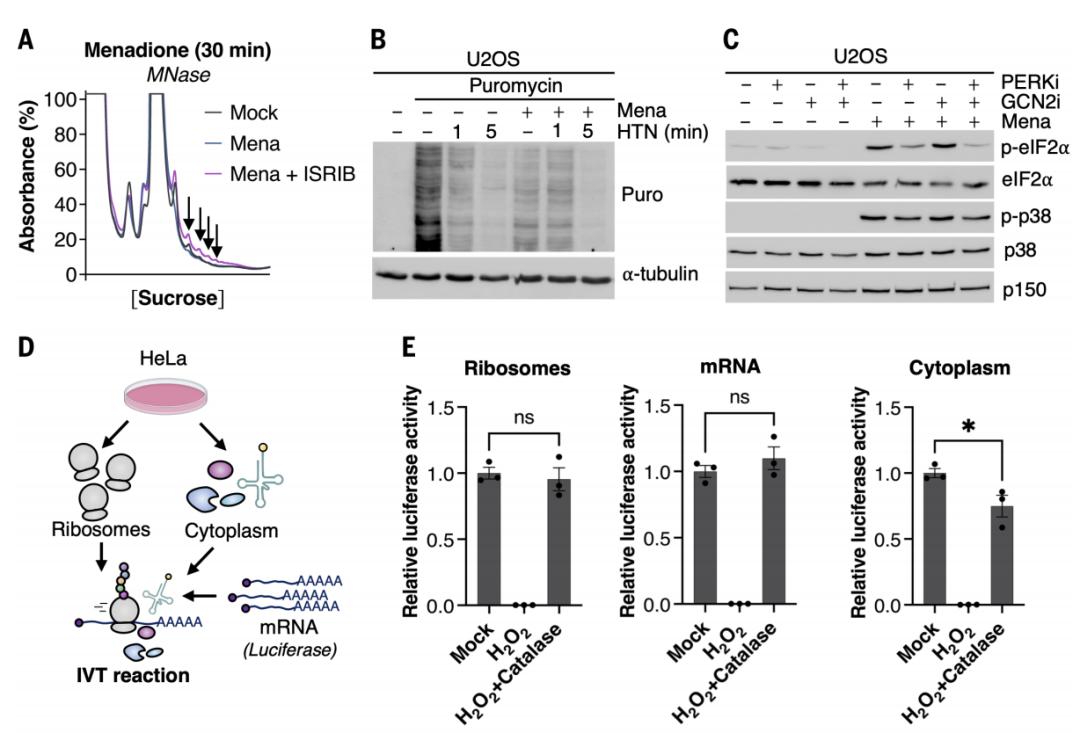 此前的研究表明,核糖霉素、抗生素和紫外线照射可以阻碍核糖体翻译过程,并导致核糖体毒性应激反应(RSR)。在这项发表于 Science 的研究中,研究团队发现,ROS是一种强大的RSR信号激活剂,它通过激活下游的p38/JNK/MAP3K并损害核糖体翻译。