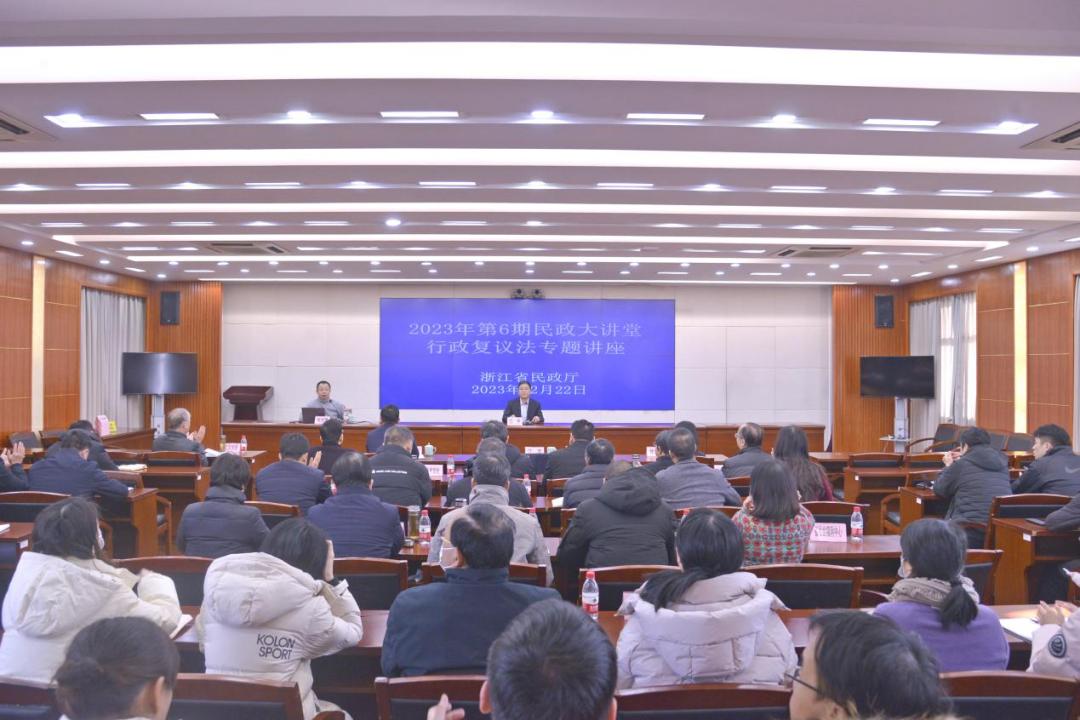 为深入学习贯彻习近平总书记关于行政复议工作的重要指示和党中央关于行政复议的重大决策部署,准确理解和实施好新修订的《行政复议法》,12月22日,省民政厅举办2023年第六期民政大讲堂,邀请浙江财经大学法学院张旭勇教授进行授课。厅党组副书记、副厅长江宇主持会议,在家厅领导,厅机关和厅大院内事业单位全体干部和其他厅属单位主要负责人参加。