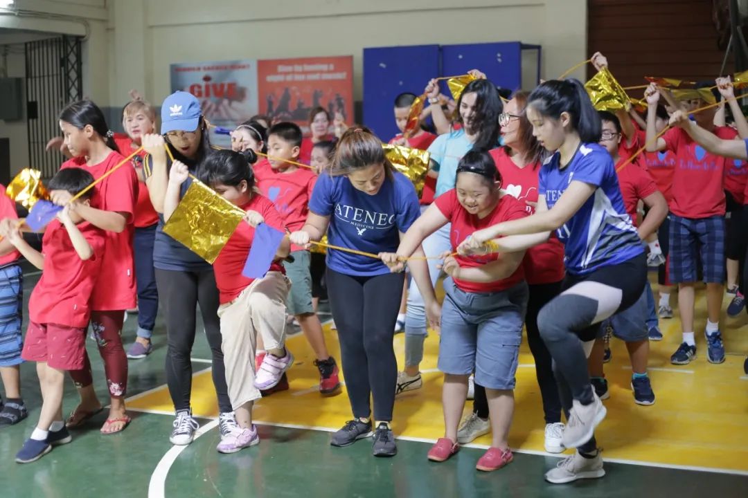 每周六,患有唐氏综合征、脑瘫和自闭症等不同病症的儿童都会与护理人员和志愿者一起聚集在奎松市一座教堂的大厅里练习动作。