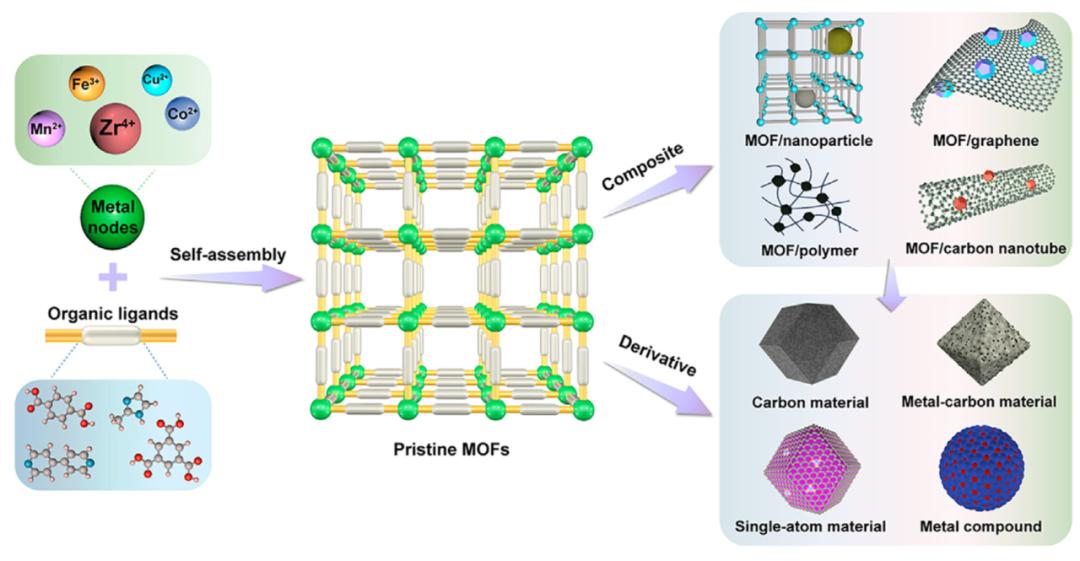 MOF衍生材料,包括MOF衍生碳、金属化合物及其复合材料,具有孔隙率高、导电性好、活性物质丰富等特点,在电催化、可充电电池等领域展现出卓越性能。