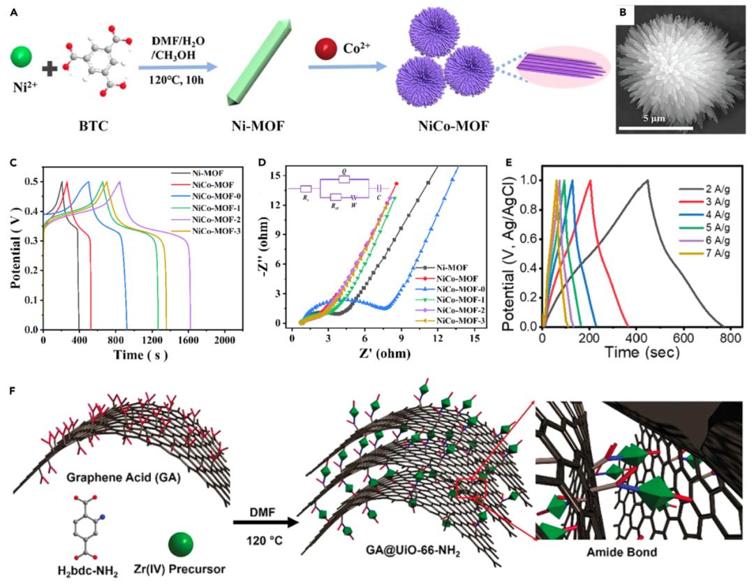 通过开发MOF复合材料,不仅能够弥补原始MOFs导电性差的缺点,还能实现MOF材料与功能单元之间的协同效应,产生定制化性能,并广泛应用于光/电催化、可充电电池等领域;
