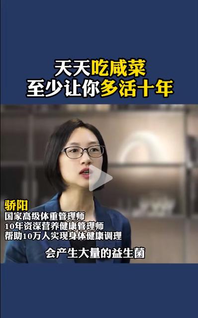 最近,朋友圈流传一个“专家”视频,宣称天天吃腌菜,至少让人多活十年,并且说腌菜里面有“益生菌”,可以让人肠道健康,增强免疫力,延年益寿。