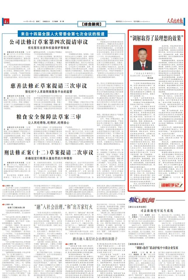 《人民法院报》12月26日4版“那个倒闭的舞蹈培训机构,没有人到法庭来立案吧?”最近在复盘全年工作时,我突然想起了5月指导汕头市潮阳区关埠镇综治中心调解的一起舞蹈培训服务合同纠纷,便随口问了法官助理一句。