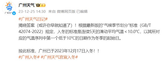 按此标准,广州已于2023年12月17日入冬!!