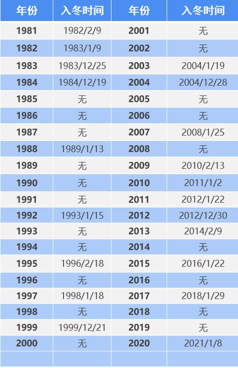 根据最新版的“气候季节划分”标准(GB/T 42074-2022)规定,入冬的标准是连续5天的滑动平均气温<10.0℃,以其所对应的气温序列中第一个低于10℃的日期作为冬季的起始日。