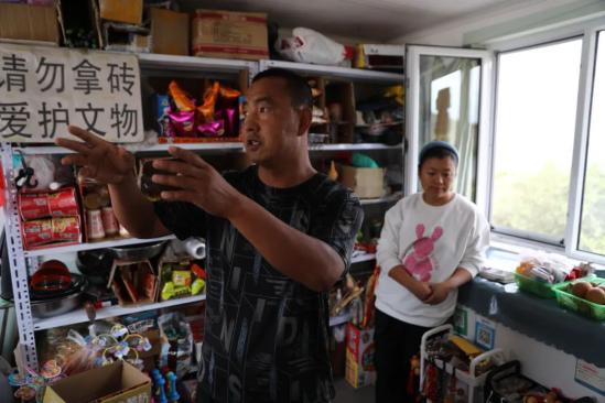 ▲9月1日,山西省朔州市山阴县境内广武长城脚下,郝中华和妻子霍春玲讲述他们保护长城的故事。广武明长城为明朝洪武七年(公元1374年)开始修筑,全长20公里。其中,位于山西省朔州市山阴县广武镇新广武村的5公里,是山西境内保存相对完好、规模宏伟、景观效果最好的一段长城。郝中华、霍春玲夫妻已经在长城脚下守护了10年。