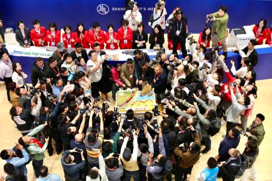 ▲11月8日,上海,第六届进博会新闻中心,记者们共同切蛋糕庆祝第24个记者节。记者节像护士节、教师节、医师节、中国人民警察节、中国农民丰收节一样,是我国仅有的六个行业性节日之一。