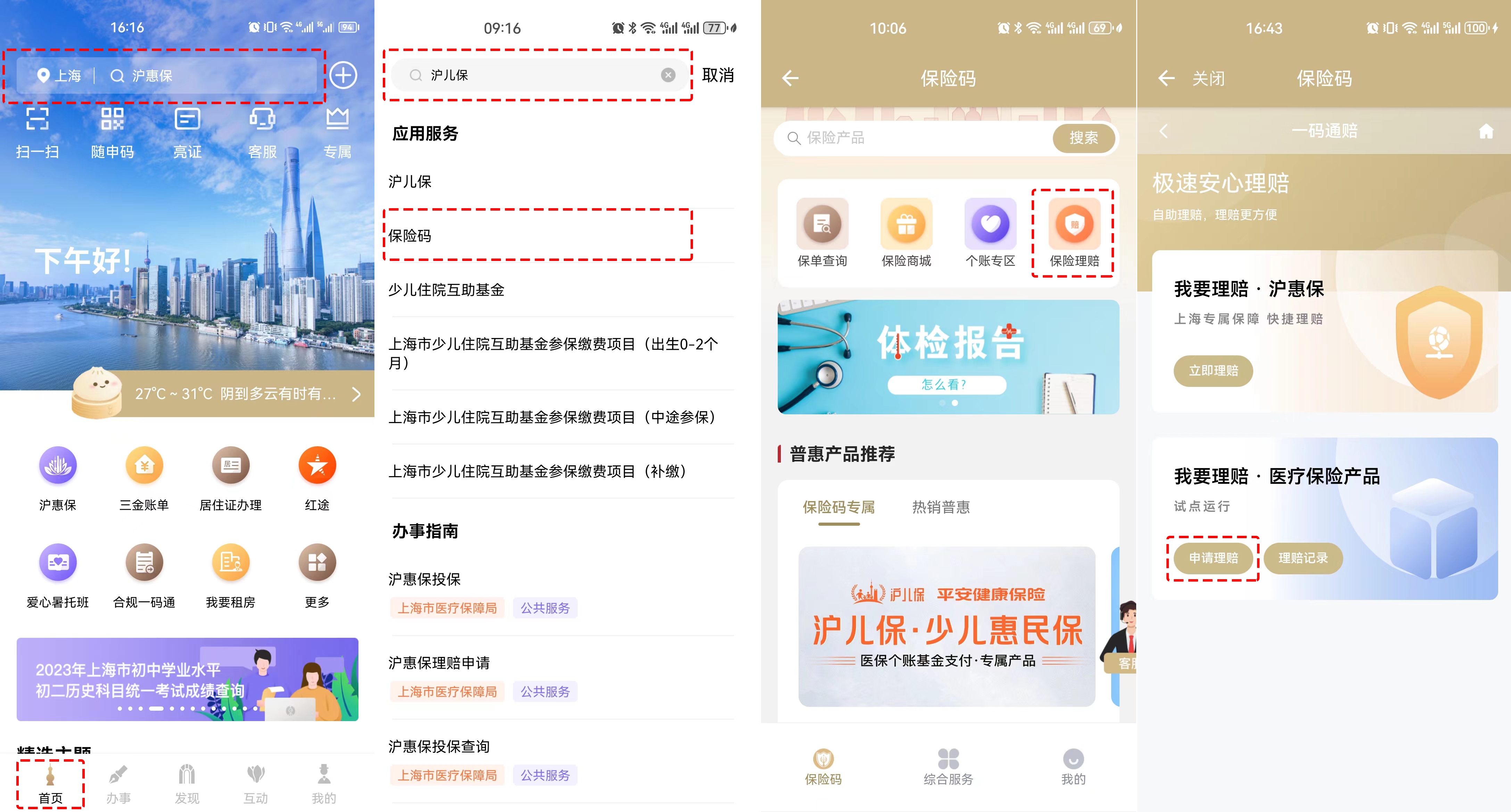 “随申办市民云”APP理赔申请入口: