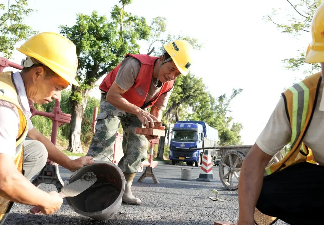 12月中旬的深圳,老易依然穿着短袖和红色马甲,和两个工友一起在路边抬升加固井盖。他不到1米7,在深圳工地干了10几年,皮肤被南方的太阳晒得黝黑。大太阳下,老易染黑的头发上又长出几根白头发,迷彩裤的裤脚被他收进高筒胶鞋里。他笑呵呵地说,这样好干活。施工作业时,老易和工友一天要赶好几个地方。今年最多的一次是深圳的台风天,台风“小犬”过境后,他们需要清理路面,填土压路,再围着几条主干道排查雨后的诸多安全隐患。