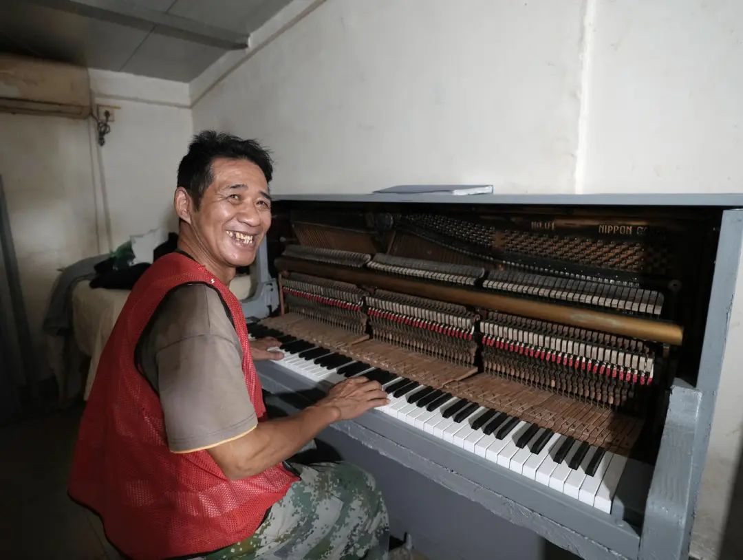 老易现在的口琴是包工头送的,已经用了好几年。但这种考验肺活量的乐器,老易觉得越来越吃力,“需要一呼一吸,没劲了。”好在现在有了钢琴,“只要我的手指还能动,就想一直弹下去。”