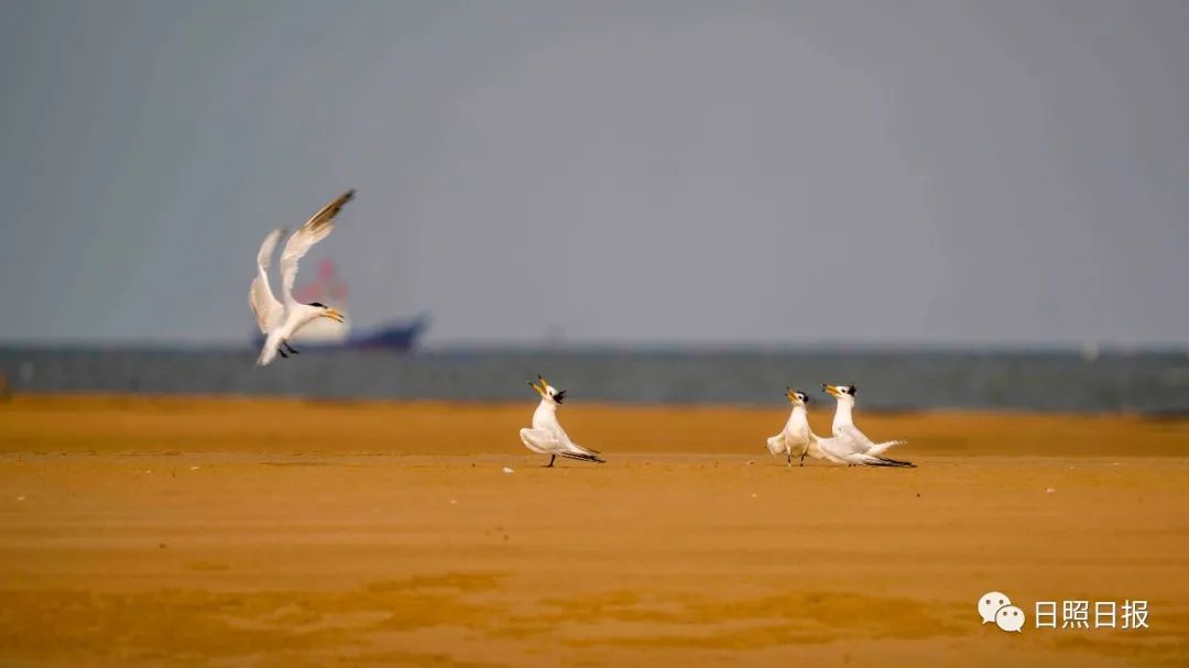 ❖“神话之鸟”又来日照了!8月25日,刘家湾赶海园往北的滩涂几只中华凤头燕鸥正在觅食嬉戏。