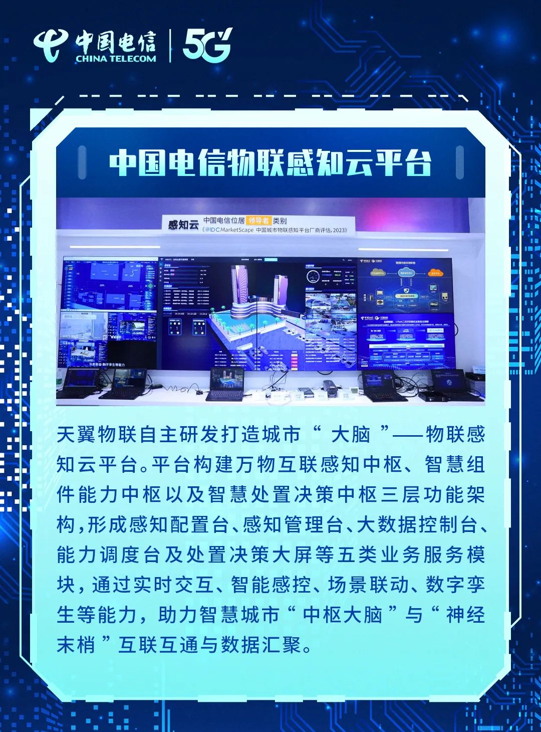 “慧聚”,通过构建一站式全链路的大模型流水线,为加速大模型的生产应用提供强劲动能。07 中国电信物联感知云平台