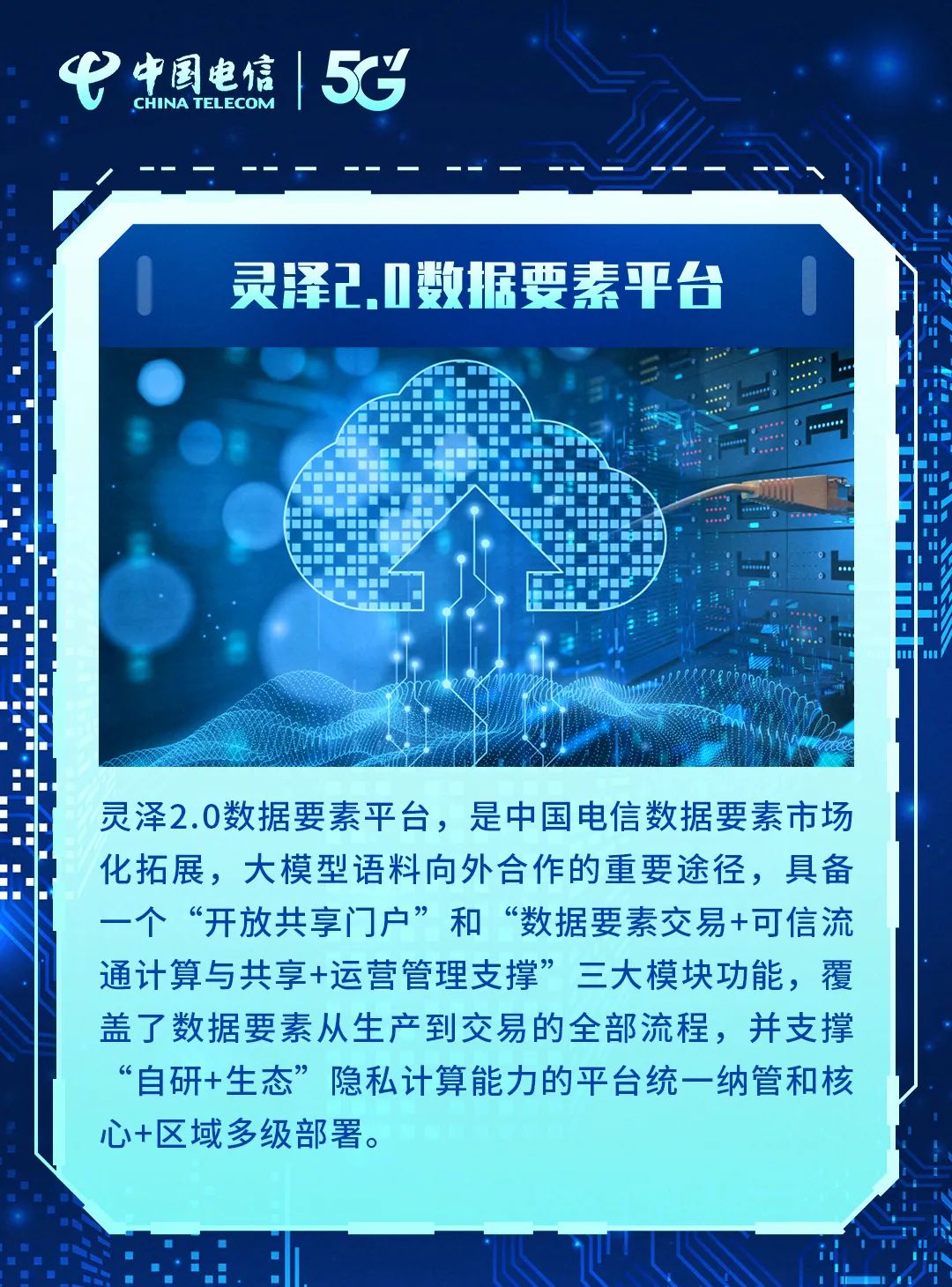 在江西,天翼物联为某智能水表设备商提供了以云芯AI模组为载体的智能连接服务,并与客户联合研发了低成本、低功耗、高性能的NB-IoT云芯智能水表,帮助客户水表终端器件数量减少1/3,PCB板尺寸减小1/3,休眠功耗降低30%,同时基于智能诊断功能,助力客户实现精准运维。09 灵泽2.0数据要素平台