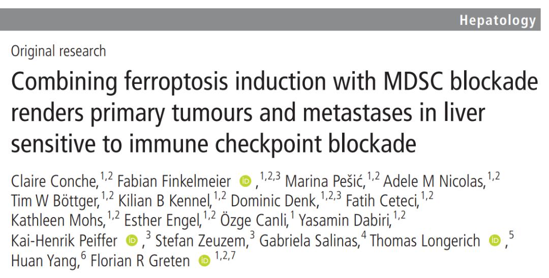 2023年1月27日,德国法兰克福大学的研究人员在 Gut 期刊发表了题为:Combining ferroptosis induction with MDSC blockade renders primary tumours and metastases in liver sensitive to immune checkpoint blockade 的研究论文。