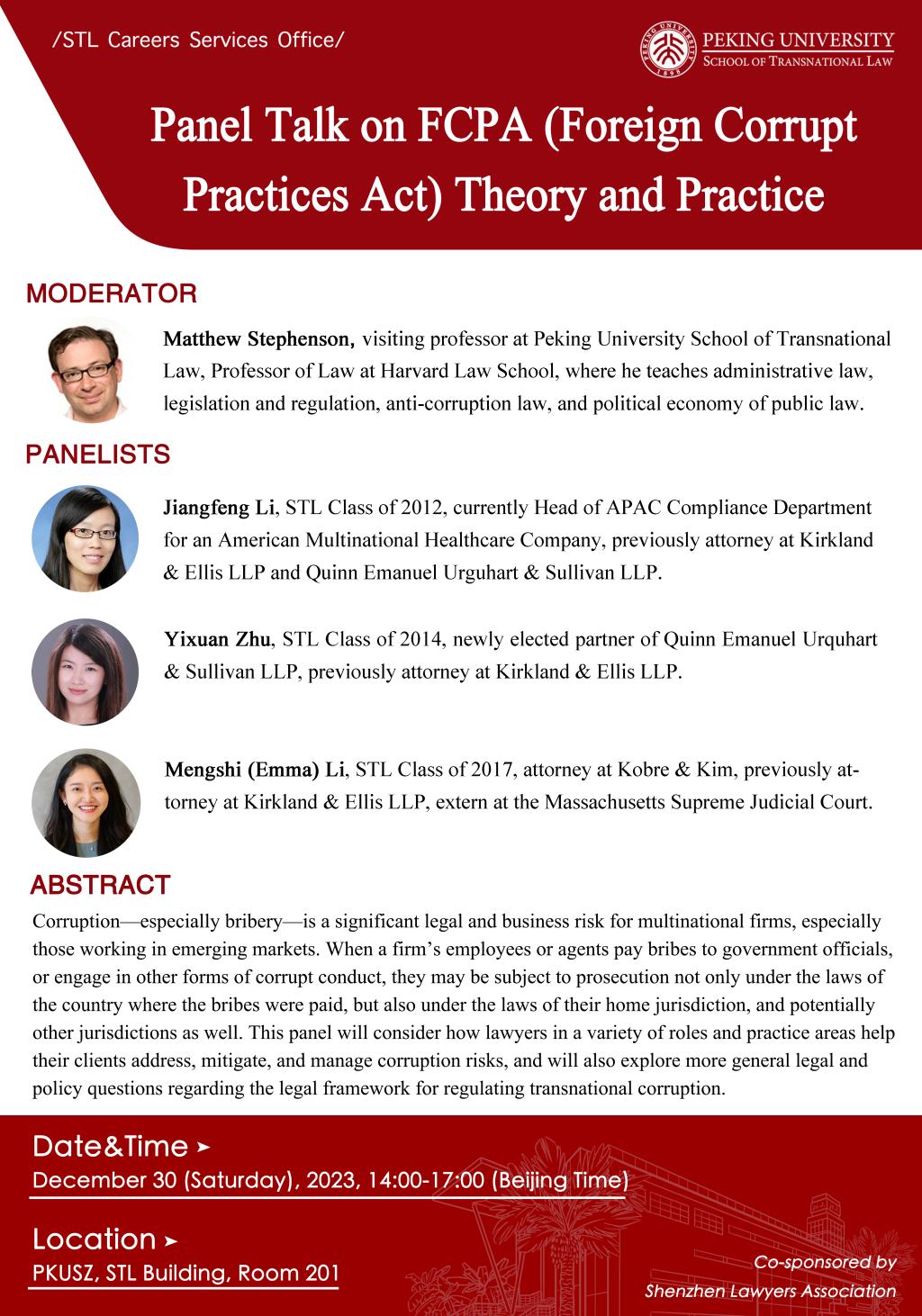 主讲人:黎江凤(美国500强医药器械公司亚太区合规部总负责人)、朱奕宣(美国昆鹰律师事务所新晋合伙人)、李梦诗(美国高博金律师事务所律师)