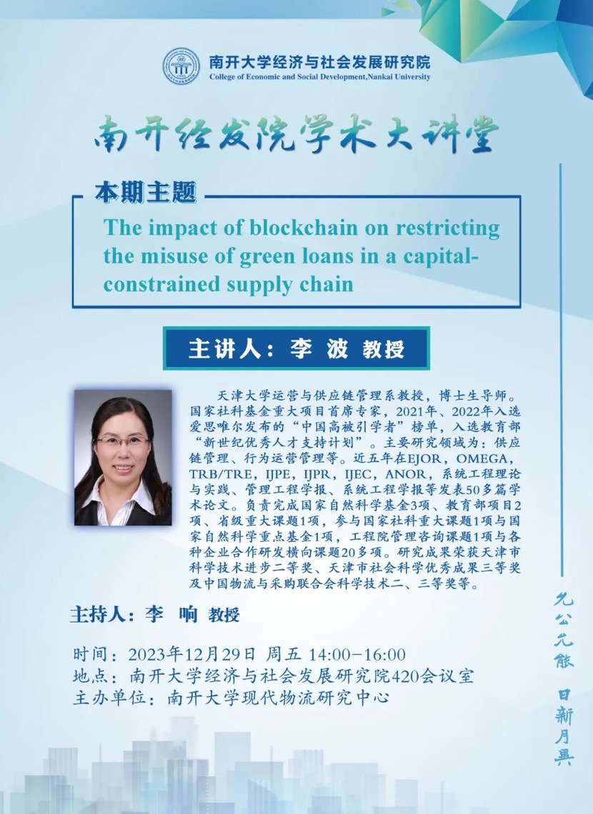 主讲人:李波(天津大学运营与供应链管理系教授、博士生导师,国家社科基金重大项目首席专家)
